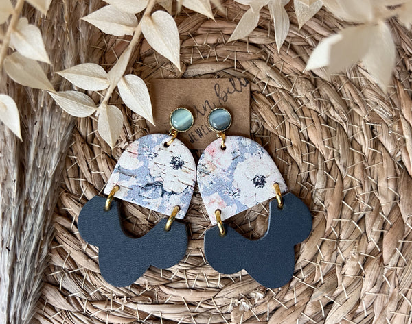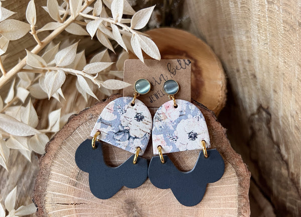 This lovely floral cork is beautiful paired with the smoky blue scalloped leather! The gold dresses it up a bit and the pearl blue stud connector is the icing on the cake!